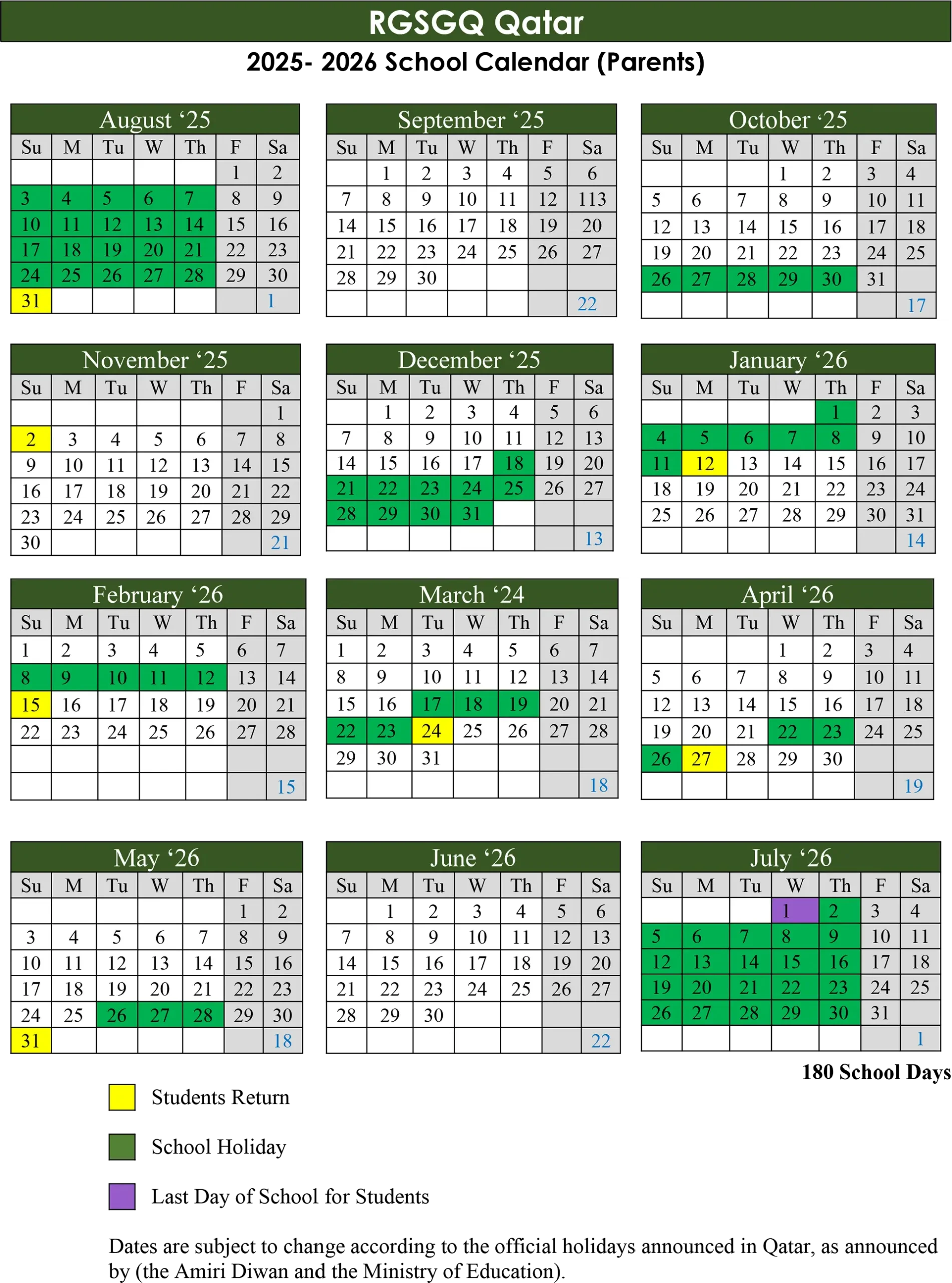 Have a look at the summary of the school calendar and key school term dates approved by the Ministry of Education and Higher Education.
