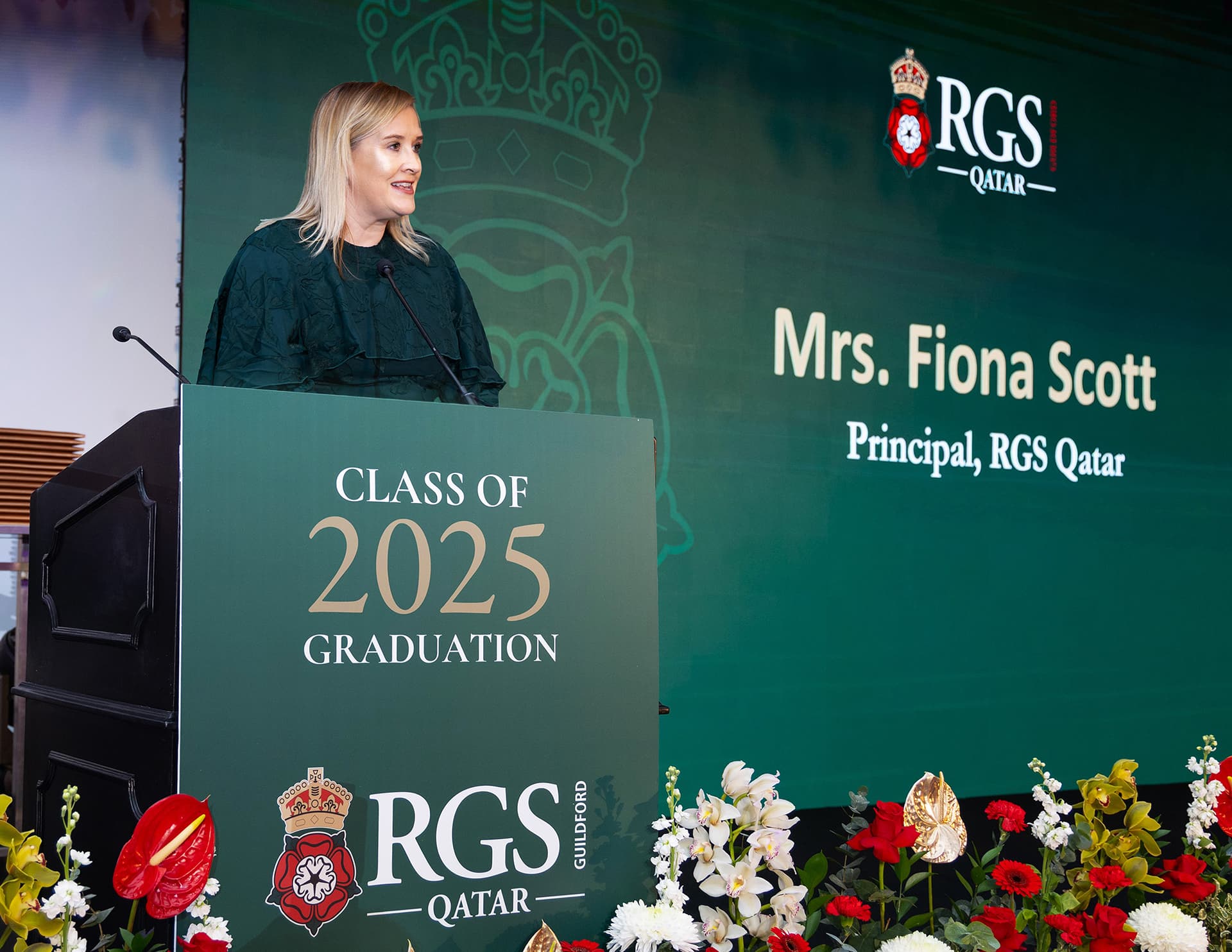 “Graduation isn’t just an ending — it’s a beginning. As you walk across this stage, you’re stepping into a world that needs your creativity, your compassion, and your commitment to making a difference. Don’t be afraid to dream boldly, be kind, and stand up for what’s right,” Mrs Fiona Scott, Principal of RGSGQ.